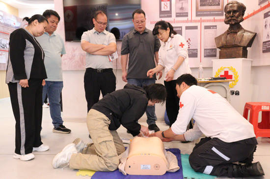红十字专家指导参训人员心肺复苏操作。李慧敏摄